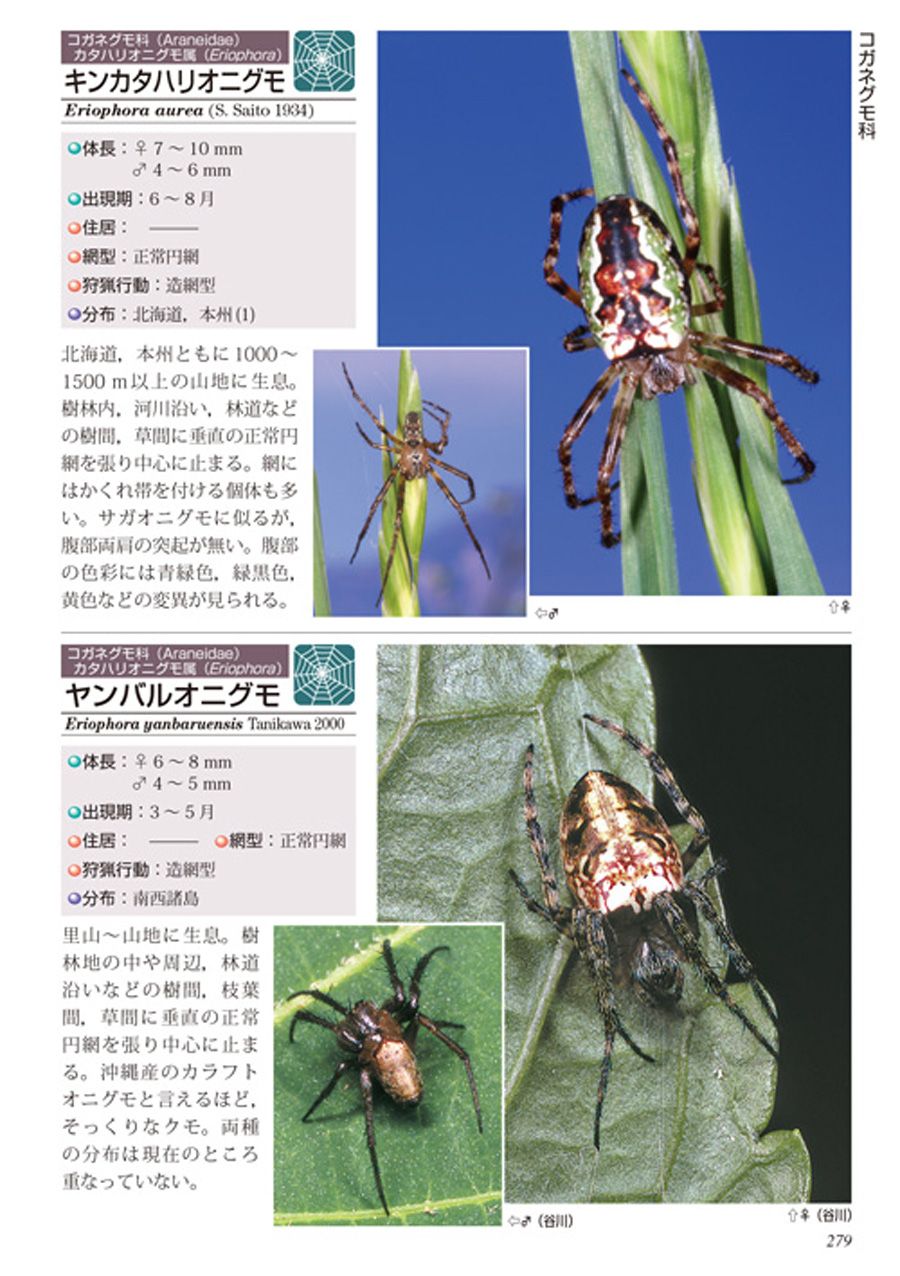 This is a new revised field guide covering spiders found in Japan. Out of the 1,700 species that can be observed in Japan, about 600 representative species are included — not only familiar ones, but also species of geographic importance such as southern and northern types. Along with updated scientific names reflecting recent taxonomic changes, the explanations have been revised and the photo quality has been improved to provide reliable information about spiders. Most of the revisions in this edition are changes to scientific names due to taxonomic updates, and 1 new species has been added. About 20 photos have been replaced with clearer ones, and the existing photos have also been color-adjusted to make morphological features easier to understand. The phylogenetic diagram of spiders that was on both endpapers has been revised to match the new classification and moved into the main pages.